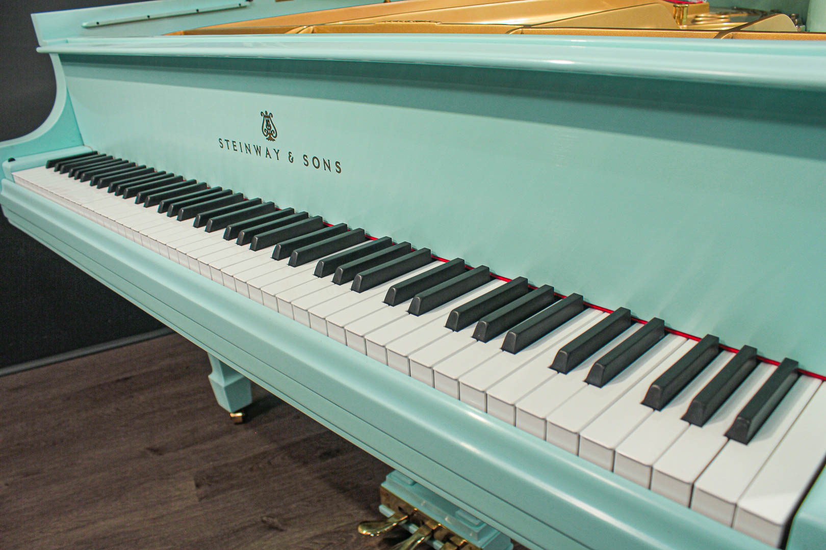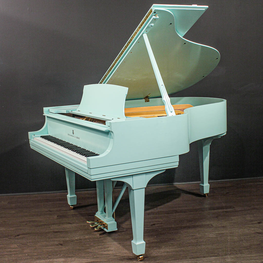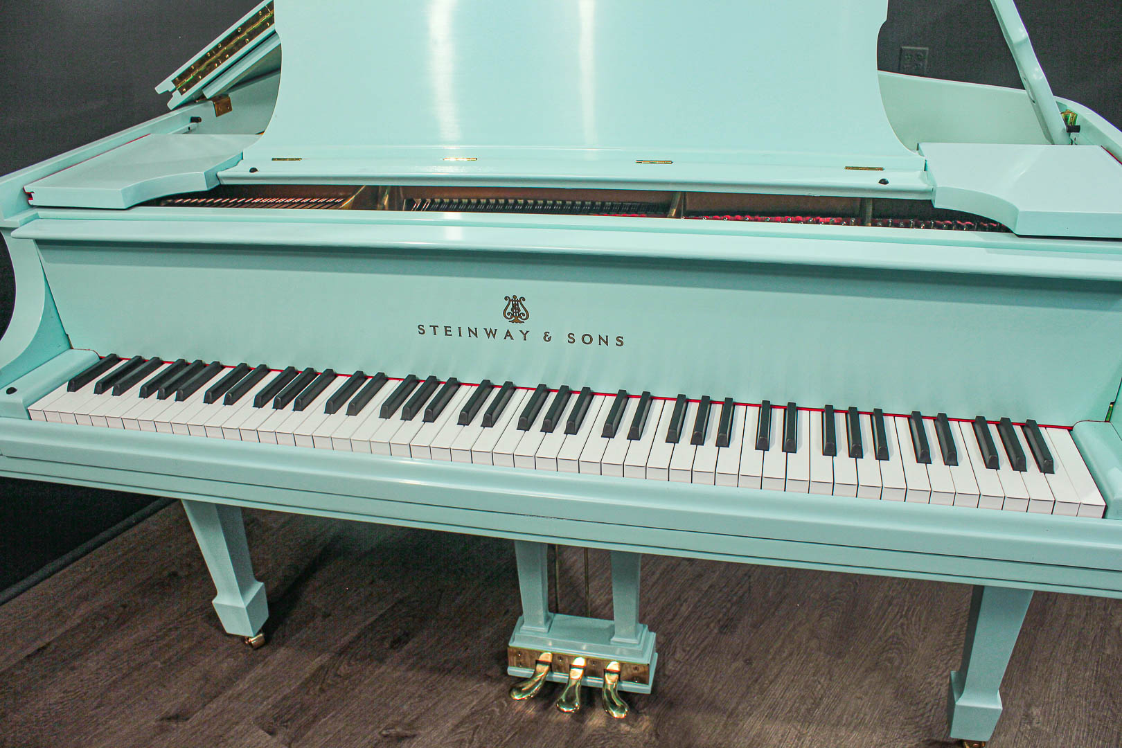 Why compromise your design aesthetic to own a fine piano? Imagine this impeccably-restored classic Steinway grand piano, just refinished in a trend-setting St. Lucia Blue finish, as a striking visual centerpiece in your home!