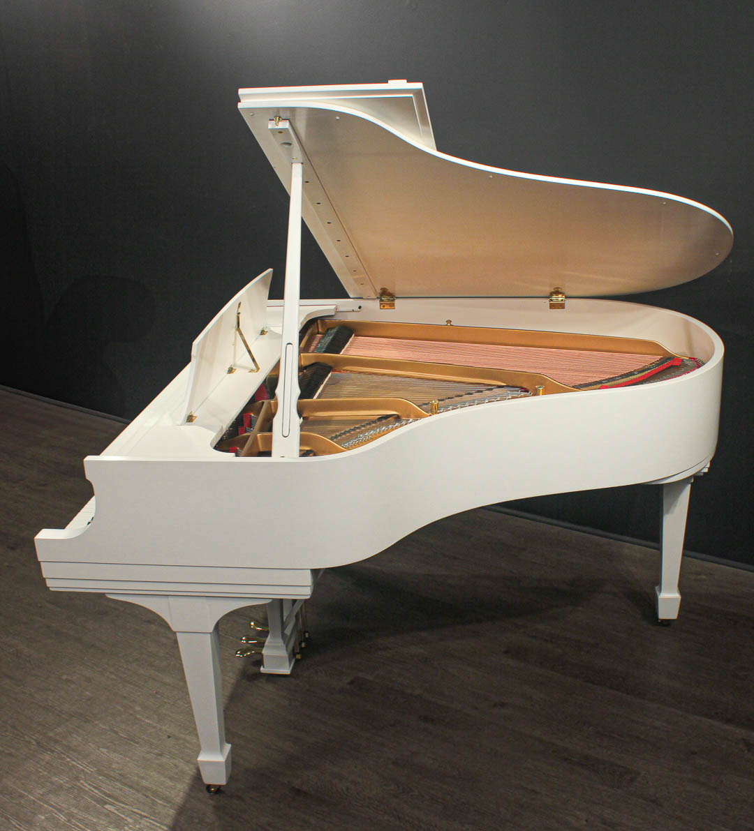 At 5'7" (170cm) in length, this piano's rich tone and responsive action is found not only in a great many homes, but in many schools of music and conservatories as well. Called the "Medium" grand, there is nothing medium about the sound from this instrument.