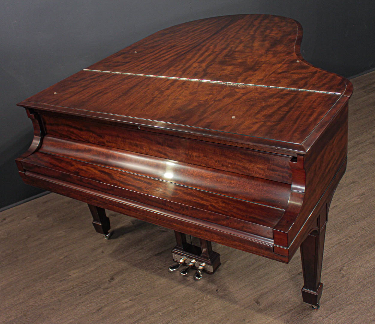 This instrument's beautiful figured mahogany cabinet is particularly notable. The veneers necessary to craft an instrument with figured grain patterns like this are very difficult (if not impossible) to source in a modern instrument, making this piano a rare and visually striking historical specimen.