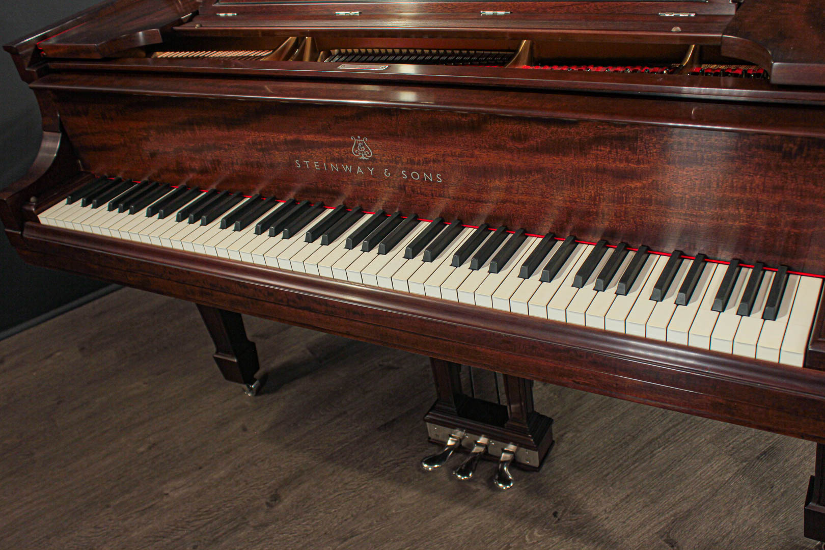 This stunning restored figured dark mahogany Steinway Model O is ready for your enjoyment. Own a piece of historic American craftsmanship for a fraction of the cost of a new Steinway grand piano.
