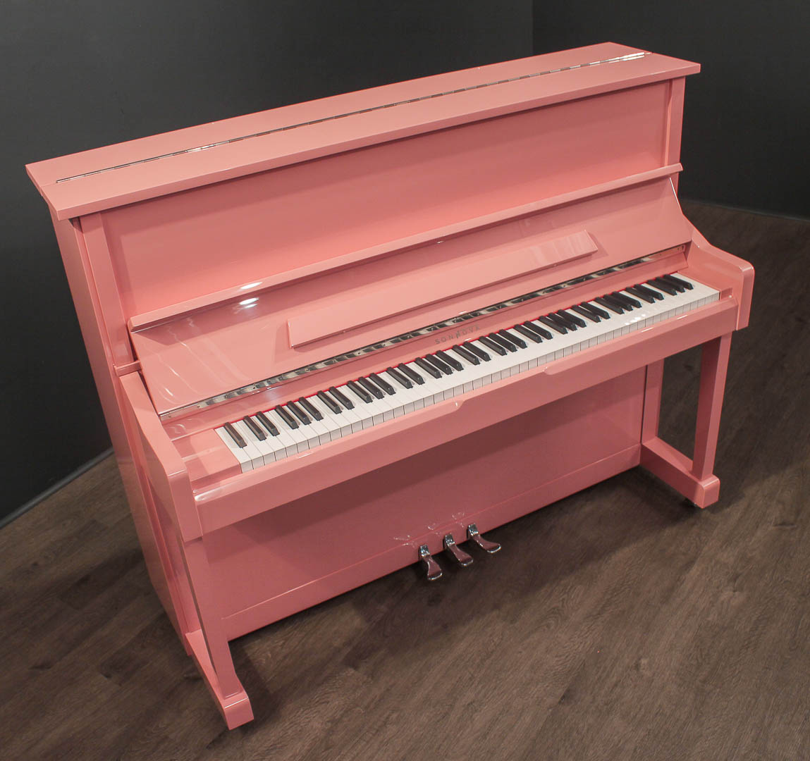 A touch of vintage glamour for the modern home, the Art Deco Pink Sonnova Upright brings warmth and charm to any space. Its 48" frame delivers the full resonance and power expected from a professional studio upright. Nickel pedals, hardware, and accents complete the timeless design.