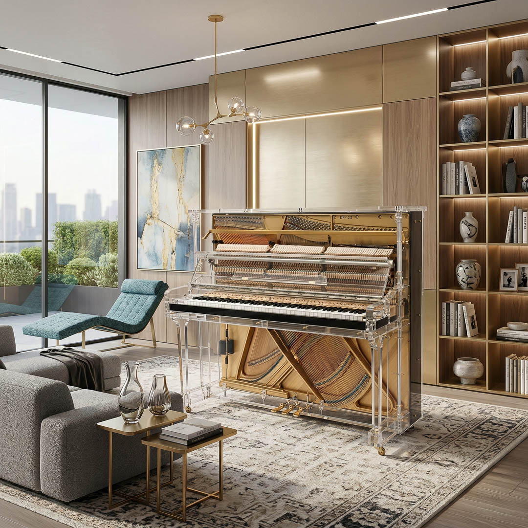 Designed for those who want more than an instrument, the limited-production Sonnova Luminos Upright Piano is a true statement piece. Crafted in crystal-clear acrylic, it brings light, transparency, and balance to any space.